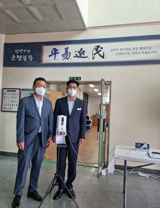 [로컬세계 김경락 기자]전북 고창군 아산면 이장단협의회가 지역사회 건강증진과 코로나19 감염병 재확산 방지를 위해 각 마을회관에 550만원 상당의 자동 손소독 발열 체크기 41대를 기증했다.