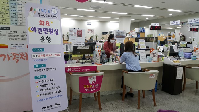 [로컬세계 맹화찬 기자]부산시 동구(구청장 최형욱)는 코로나19 확산방지를 위해 잠정 중단 됐던 '화요 야간 민원실' 운영을 재개한다고 25일 밝혔다.