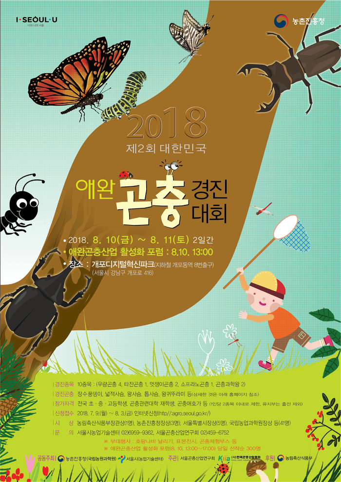 서울시 농업기술센터는 농촌진흥청 국립농업과학원과 함께 오는 8월 10~11일 양일간 개포디지털혁신파크에서 국내 애완곤충 산업의 활성화를 모색하는 ‘대한민국 애완곤충 경진대회’를 연다고 13일 밝혔다.