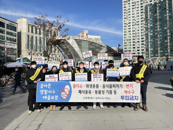 [로컬세계 = 이영원 기자]경기 고양특례시(시장 이동환)는 덕양구 화정역문화광장에서 상하수도사업소와 수질복원센터 직원이 참여한 가운데 '올바른 생활하수 배출 요령' 길거리 캠페인을 실시했다고 13일 전했다.