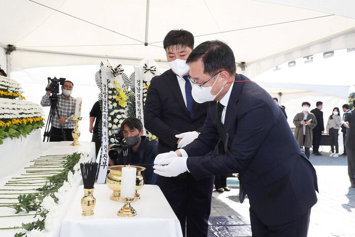 이어 홍 시장은 간부공무원들과 경남도청에 설치된 합동분향소를 찾아, 헌화하고 애도의 뜻을 표했다.