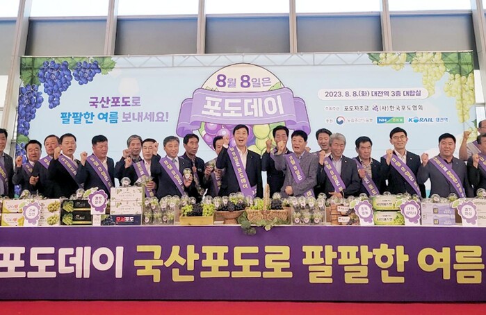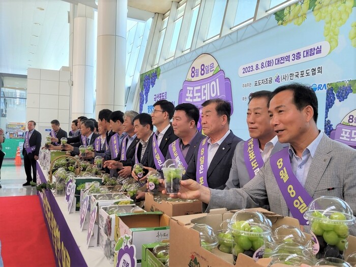 농협경제지주와 (사)한국포도협회는 8일, 포도데이(8월 8일)를 기념해 대전역에서 '2023 포도데이 나눔행사'를 실시했다.