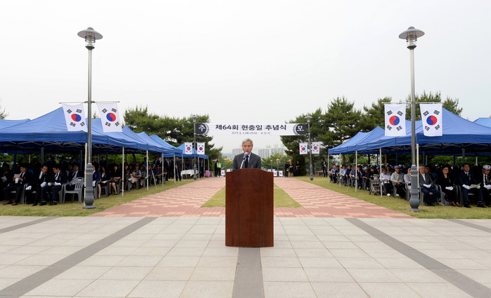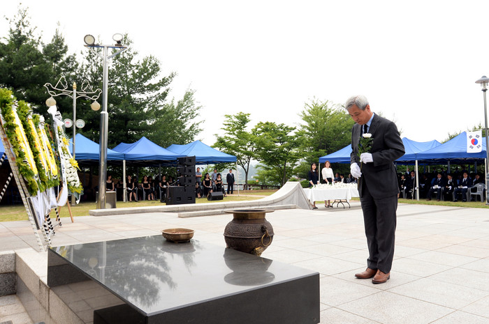 이날 추념식은 국민의례에 이어 순국선열 및 호국영령에 대한 묵념, 헌화 및 분향, 추념사, 추도사, 헌시낭독, 현충일 노래 제창 순으로 진행됐다.