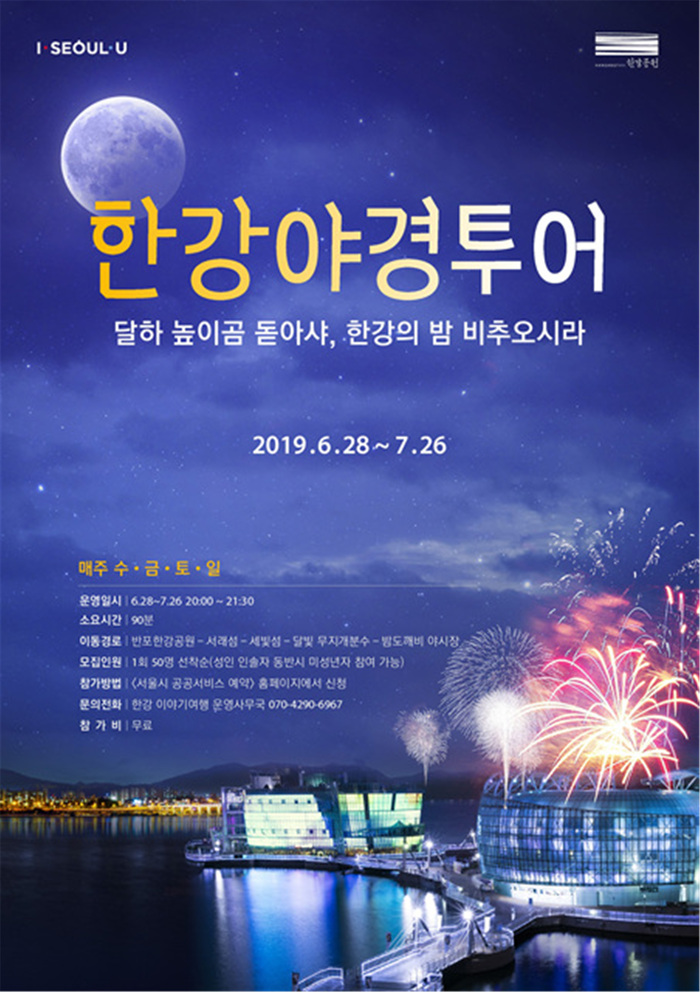 박기용 시 한강사업본부 총무부장은 “조금씩 더워지는 초여름 밤, 시원한 한강의 야경 투어와 함께 달빛아래 낭만적인 추억을 만들어보시라”며 “올 가을에는 이촌한강공원에서 새로운 한강 야경 투어를 선보일 예정이니 많은 기대 바란다”고 말했다.