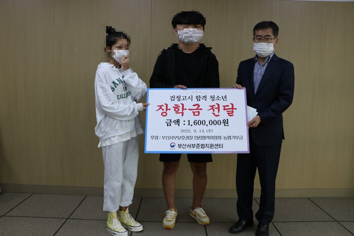 [로컬세계 부산=맹화찬 기자]부산서부준법지원센터는 코로나19 등으로 어려운 환경에도 성실히 학업에 매진하여 검정고시 합격한 청소년 보호관찰대상자 8명에 대해 총 160만원의 장학금을 전달했다고 15일 밝혔다.