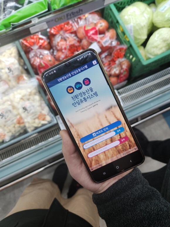 ▲ 농협경제지주가 오는 1월 2일부터 21일까지 설 명절 식품안전 특별관리를 위한 ‘식품안전 종합상황실’ 운영과 ‘식품안전 특별점검’을 실시한다. 사진은 현장점검 시 농산물 인증상태·유통경로·부적합정보 등을 확인할 수 있는 ‘친환경농산물 안심유통시스템’ 앱을 실행한 모습. 농협 제공 |