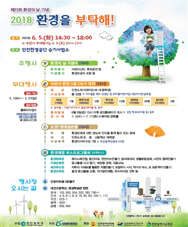 이날 오후 3시에 개최되는 기념식에는 전성수 인천광역시장 권한대행, 황인성 인천시의회 부의장을 비롯해 지역 국회의원과 시의원 및 80여개 환경단체 대표와 학생, 시민, 공무원 등 2000여 명이 참석할 예정이며, 인천시와, 인천시의회, 인천시교육청, 인천환경공단이 공동으로 추진한다.
