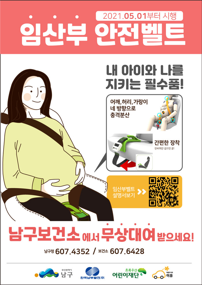 [로컬세계 맹화찬 기자]부산 남구(구청장 박재범)는 부산 최초로 ‘임산부 및 태아의 교통안전을 위한 임산부전용 안전벨트 대여사업’을 5월1일부터 실시하고 있다.