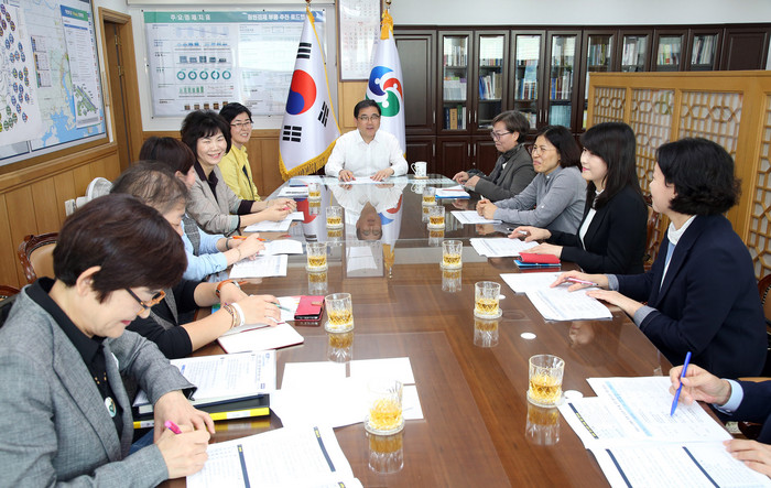 | ▲허성무 시장이 경남여성단체연합 주관으로 창원시 여성정책 추진사항을 점검하는 감담회 진행 모습.(창원시 제공) |