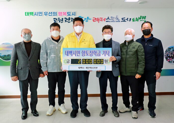 [로컬세계=박상진 기자]강원 태백시 개인택시지부 지부장 및 임원 4명은 2일 태백시청을 찾아 태백시민향토장학회(이사장 이상호 태백시장)에 지역인재 육성을 위한 향토장학금 200만원을 기탁했다.