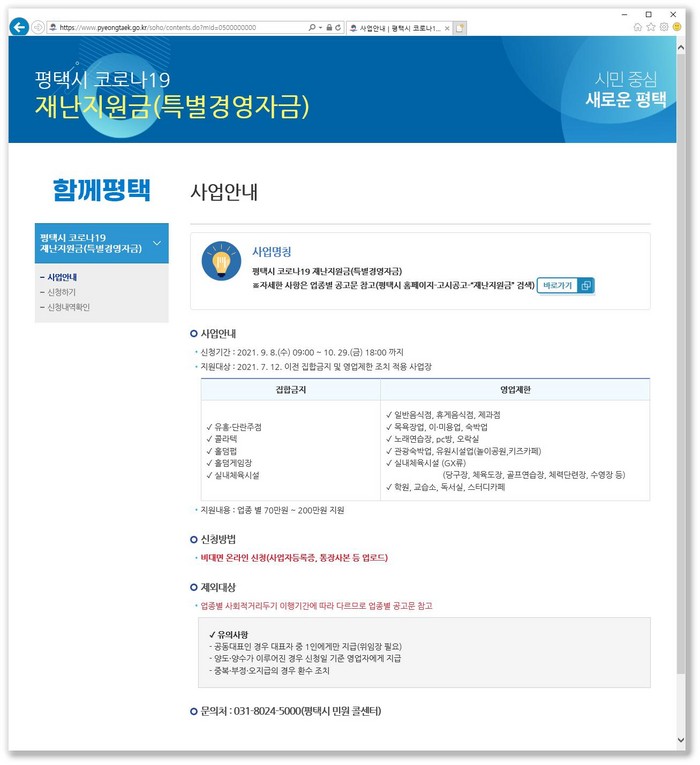 8일부터 시 홈페이지에서 업종별 공고 확인 및 비대면으로 신청·접수