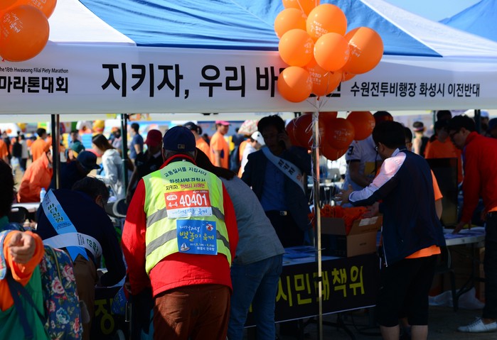 이날 대회에는 많은 화성시민들이 전투비행장 이전 반대 문구를 부착하고 마라톤에 참가해 장관을 이루며서 전국 각지에서 올라온 2만8000여 명의 마라토너들에게 깊은 인상을 주었다.