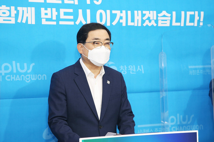 ▲허성무 시장이 14일 브리핑을 갖고 있다. 창원시 제공 |
