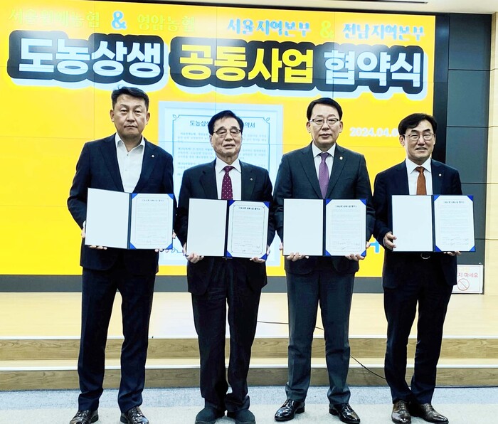 서울농협(본부장 김상수)은 4일 전남 영암농협 본점에서 서울원예농협과 전남 영암농협 간 도농상생 공동사업 협약식을 개최했다.