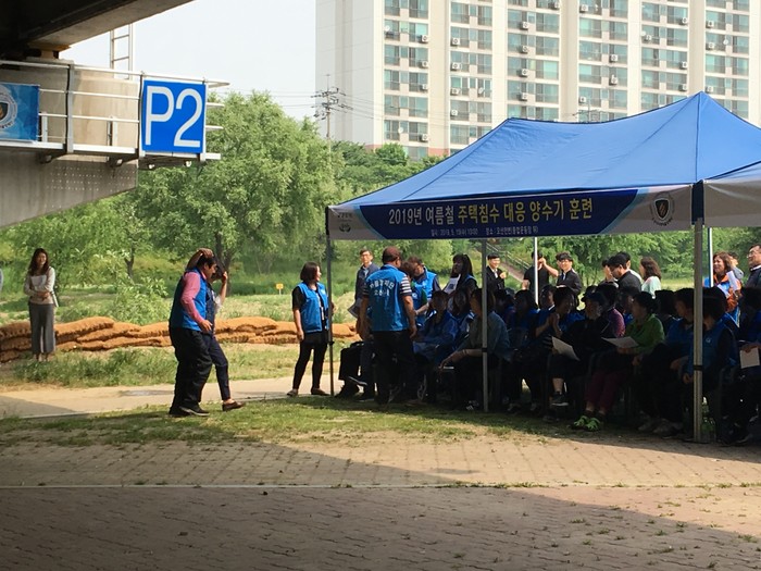 이어 동별로 팀을 이루어 직접 양수기를 작동하는 체험훈련도 함께 했는데 시민들로부터 좋은 반응을 받았다.