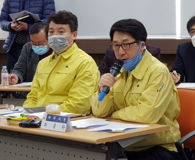 최종환 파주시장은 "이번 코로나19 사태를 통해 3개 도시 간 밀접성이 더욱 분명해졌으며 이번 협약으로 감염병 확산 차단을 위한 확진자의 동선 정보를 신속히 공유하고 특히 접촉자를 빠르게 찾을 수 있는 공조 장치를 마련하게 됐다"고 공동 협약의 배경을 설명했다.