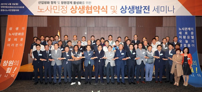 협약에 참여한 기업체 노사와 노사민정 위원들은 세계경제 둔화 지속과 대외 불활식성 증대에 따른 경제위기를 같이 인식하고 창원경제 활성화와 산업평화 정착을 위해 다함께 노력하기로 다짐했다.