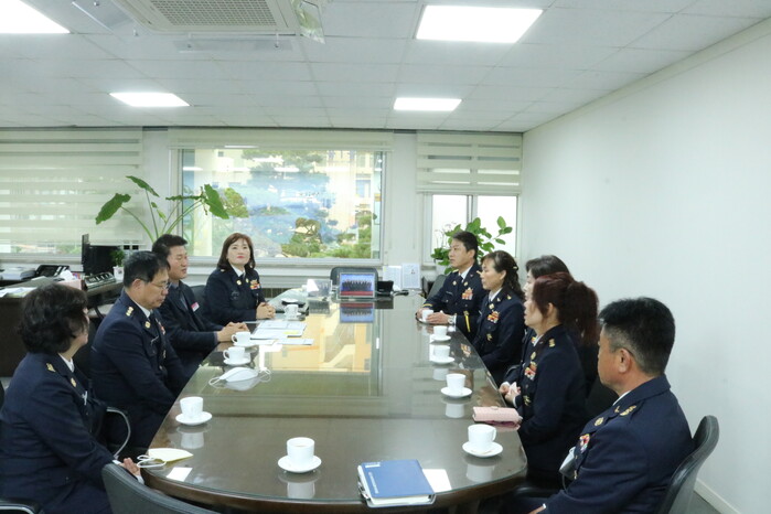 ▲부산 해운대소방서 소속 남녀 의용소방대장 및 지역대장이 14일 정책 공유와 소통 강화를 위해 해운대구청을 방문, 의견을 교환하고 있다. 해운대소방서 제공 |