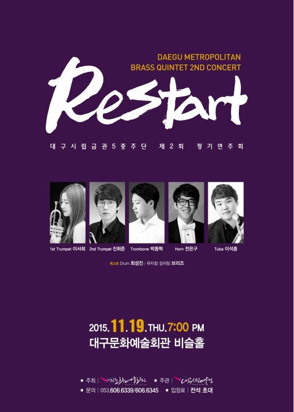 대구시립금관5중주단은 올해 3년차를 맞이했으며 제1트럼펫, 제2트럼펫, 트롬본, 호른, 튜바로 구성된 차세대 금관악기 연주단이다.