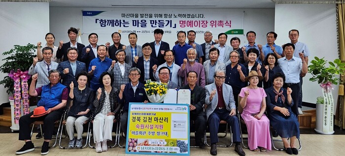 이날 행사는 남김천농협(조합장 오세윤) 관내인 구성면 마산리 마을에 활력을 불어넣고자 범농협 도농협동운동인 '함께하는 마을 만들기'를 체결하고 김충섭 김천시장이 남서울농협 안용승 조합장을 마산리 명예이장으로 위촉했다.