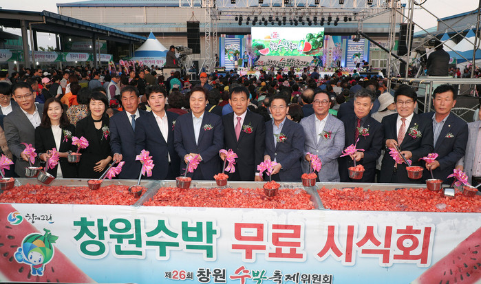 이날 행사장을 찾은 허성무 창원시장은 그동안 어려운 농업여건에서 고품질의 명품수박을 생산한 농업인들을 격려하고, 창원수박축제장을 방문한 시민과 관광객들에게 대한민국 1등 ‘창원수박’을 많이 애용해 줄 것을 당부했다.