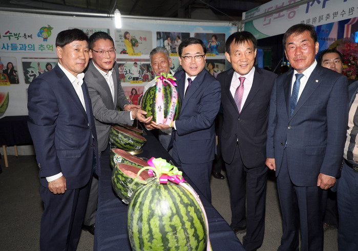 축제장에서는 수박품평회를 비롯해 수박카빙 작품전시, 과일 플레이팅 작품전시 등 다양한 볼거리 함께 ‘깜짝 경매이벤트’, ‘딩동댕! 현장노래방’, 수박가요제 등 다채로운 참여행사가 펼쳐졌다.