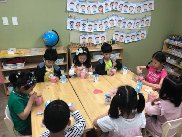 | ▲아토피 예방 체험 프로그램에서 우유만들기를 하는 모습 |