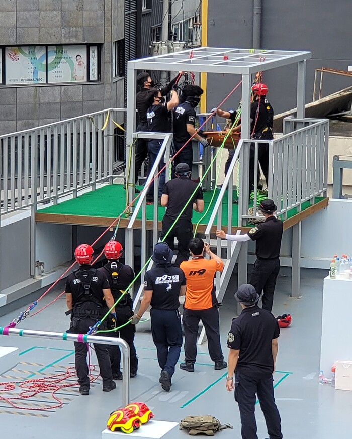 이번 훈련은 중부소방서 119구조대의 응용구조전술 훈련장을 이용하여 협소하고 활동이 곤란한 구조현장