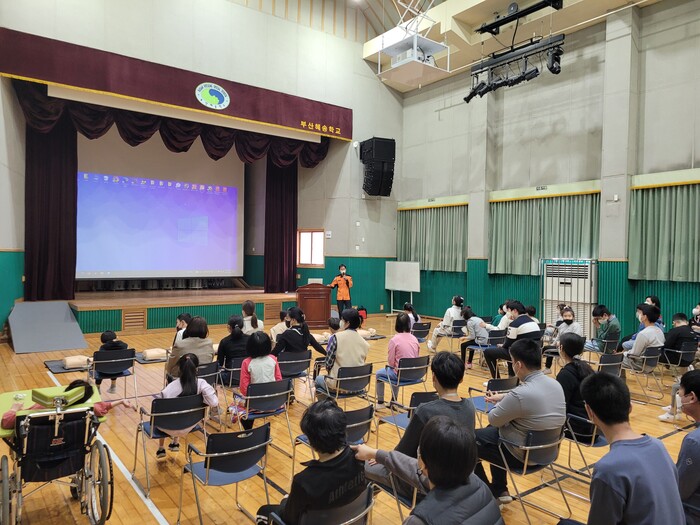 [로컬세계 부산=맹화찬 기자]부산 중부소방서는 지난 28일 오전 서구 송도혜성학교 학생(장애인)들을 대상으로 소방안전 및 응급처치 교육을 실시했다고 31일 밝혔다.