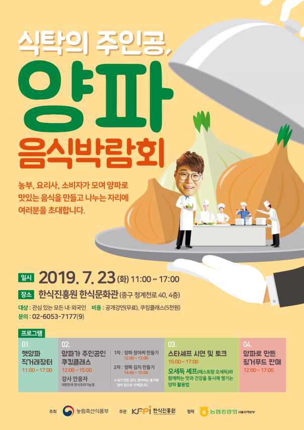 이번 박람회는 양파가 식탁에서 훌륭한 만능 식재료임을 홍보하기 위해 농부, 요리사, 소비자가 함께 맛있는 음식을 만들고, 건강하게 양파를 소비할 수 있는 다채로운 행사가 진행 될 예정이다.