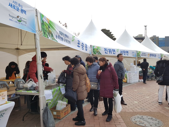 이번 직거래장터는 설 명절을 맞아 관내 평택과수농협 등 40여 개 농가·단체 등이 참여해 흥겨운 장터 분위기를 만들었다.
