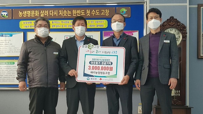 [로컬세계 김경락 기자]전북 고창군 해리농업협동조합(조합장 김갑선)이 해리면사무소를 방문해 해리면, 심원면, 상하면의 어려운 이웃을 위해 이웃돕기성금 300만원을 기탁했다고 29일 밝혔다.