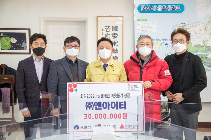 [로컬세계 양해수 기자]전북 군산시는 ㈜엔아이티(대표 김주한, 이강욱)가 어려운 이웃을 돕고 나눔을 실천하기 위해 나눔명문기업 약정회원에 가입하며 성금 3,000만원을 기탁했다고 11일 밝혔다.