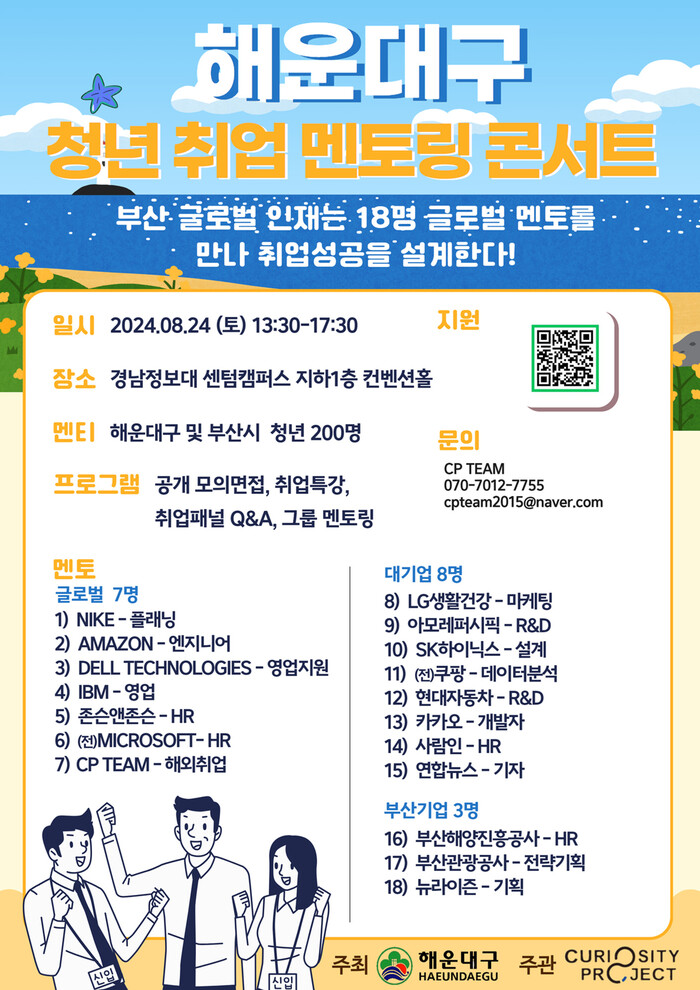 [로컬세계 부산=맹화찬 기자]부산 해운대구는 오는 24일 오후 2시 경남정보대학교 센텀캠퍼스 지하 1층 컨벤션홀에서 ‘글로벌, 대기업 취업 멘토링 콘서트’를 갖는다.
