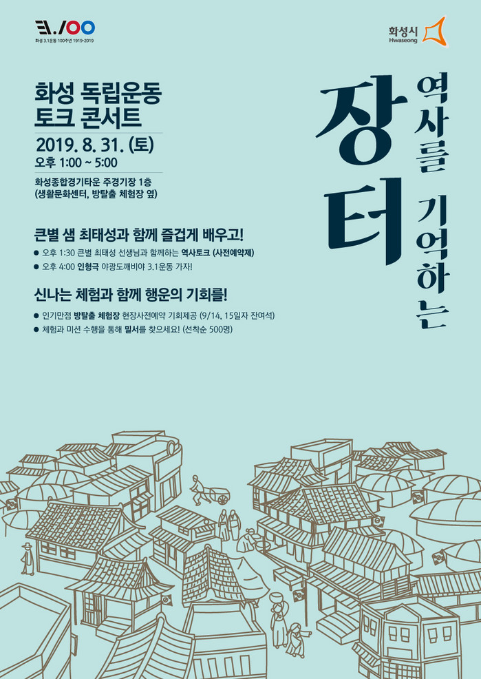 [로컬세계 고용주 기자]경기 화성시는 오는 31일 화성종합경기타운 주경기장에서 ‘화성 독립운동 토크 콘서트 – 역사를 기억하는 장터’를 개최한다고 23일 밝혔다.