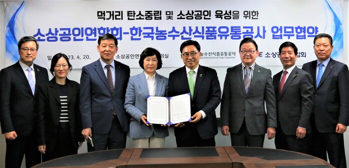 한국농수산식품유통공사(사장 김춘진)는 소상공인연합회와 지난 20일 서울 소상공인연합회 대회의실에서 ‘먹거리 탄소중립 생활 실천’과 ‘농수산식품 분야 소상공인 역량 강화’를 위한 업무협약을 체결했다고 21일 밝혔다.
