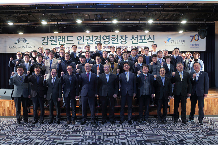 이날 선포식에는 문태곤 강원랜드 대표이사를 비롯한 임직원 400여 명이 참석해 근로자 및 회사 이해관계자들의 인권을 보호하고 존중하는 기업문화 정착을 다짐했다.