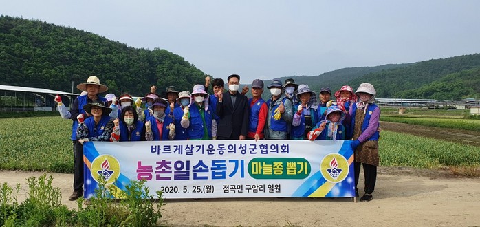 이날 회원 20명은 본격적인 마늘 수확철을 맞아 일손부족으로 어려움을 겪는 점곡면 명고리의 마늘밭을 찾았으며, 이른 아침부터 마늘종을 뽑으며 일손돕기에 구슬땀을 흘렸다.