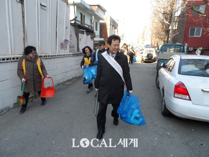 [로컬세계 전승원 기자] 박겸수 강북구청장이 수유1동에서 진행된 ‘청결강북 대청소 및 캠페인’에 참가했다. 수유1동주민센터에서 시작해 빨래골어린이공원, 한빛교회, 청화타운에 이르는 3㎞ 구간을 3개 구역으로 나눠 실시했다.