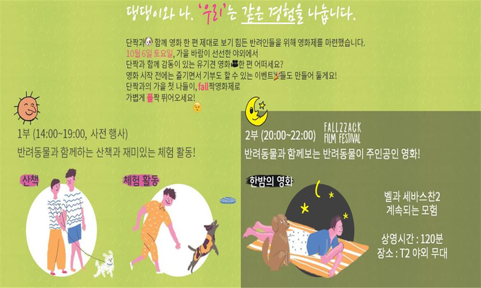 오후 1~7시에는 사전 행사로 산책, 그림그리기 등 반려견도 참여할 수 있는 프로그램이 마련됐다. 이외에도 사진·영상 촬영 이벤트 등 다양하게 있다. 행사에는 누구나 현장 참여가 가능하다.