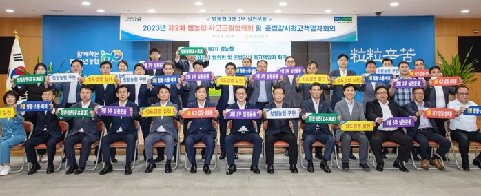 농협은 26일 서울 중구 농협중앙회 본관에서 2023년 제2차 '범농협 준법감시최고책임자회의'를 개최하고, 전사적인 사고 근절 및 대책을 논의했다.