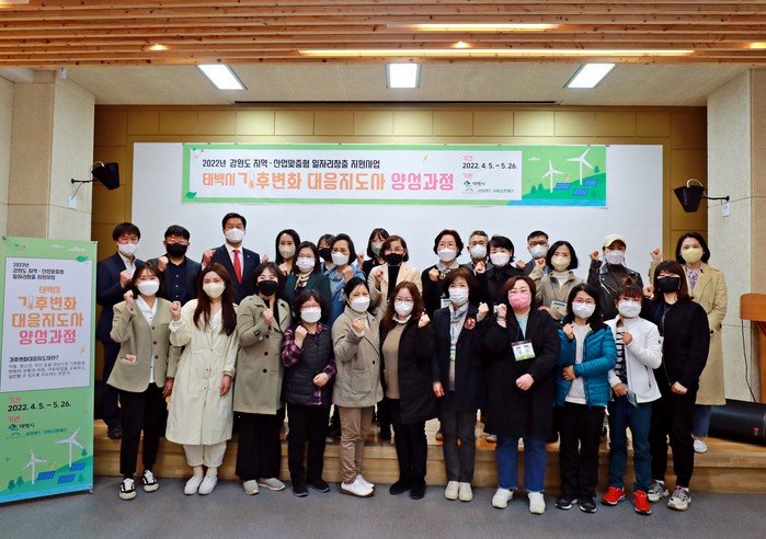 [로컬세계 박상진 기자]강원 태백시는 강원랜드 사회공헌재단(대표: 심규호)과 함께 5일 산소드림도서관에서 2022년 여성의 사회경제활동 참여 활성화와 태백시 자연환경 보전 중요성에 대한 인식 확산을 위한 '태백시 기후변화 대응지도사 양성과정' 개강식을 개최했다.