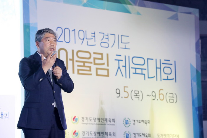 송한준 의장은 이날 오전 수원실내체육관에서 개최된 ‘2019 경기도 어울림체육대회 개회식’에 참석해 “장애인과 비장애인이 함께 어우러지는 체육대회가 개최돼 뜻깊다”며 “신체적 조건과 종목별 주특기가 각자 다른 모두가 서로 차이를 인정하고 존중하며 스포츠를 즐기기 바란다”고 말했다.