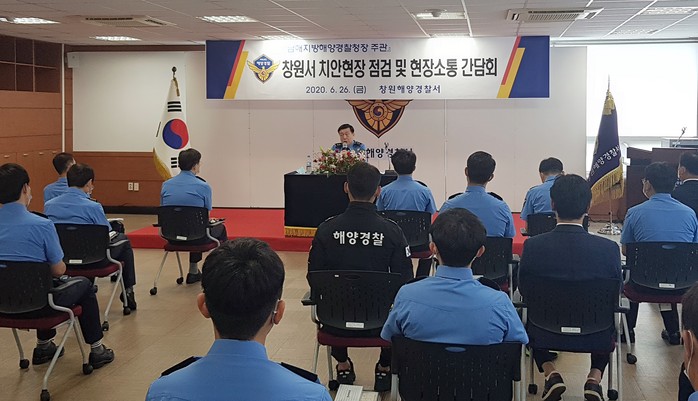 [로컬세계 맹화찬 기자]26일 구자영 남해지방해양경찰청장이 창원해양경찰서를 찾아 치안상황을 점검하고 업무 현장에서 활약한 직원들을 격려했다.