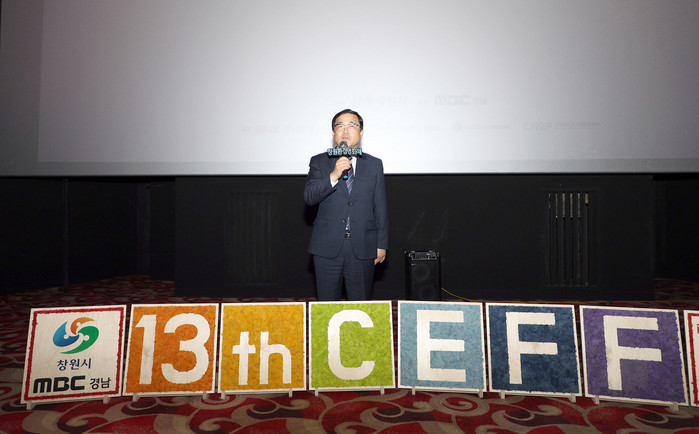 | ▲허성무 시장이‘제13회 창원환경영화제’ 개막식에서 인사말을 하고 있다.(창원시 제공) |