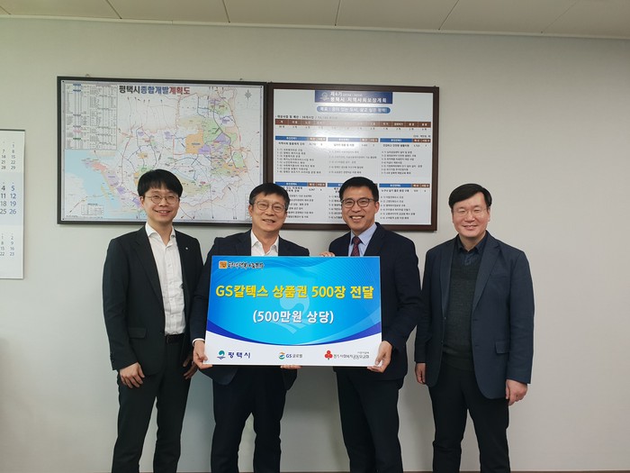 ㈜GS글로벌은 지난 29일 평택시를 방문해 어려운 이웃에게 써달라며 500만원 상당의 GS칼텍스 상품권(1만원권 500장)을 기탁했다.