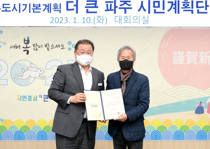 김경일 파주시장은 “파주는 발전 가능성이 무궁무진한 성장형 도시로 100만 도시를 바라볼 수 있는 곳”이라며, “시민계획단과 파주시가 함께 100만 도시 파주의 기틀을 마련하는 맞춤형 전략을 수립, 새로운 미래를 향해 나아가겠다”고 전했다.