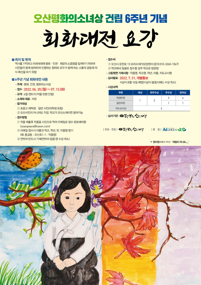 | ▲오산 평화의 소녀상 건립 6주년 회화대전 공모 포스터. 오산시 제공 |