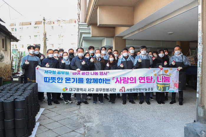 [로컬세계 박세환 기자]대구 서구청은 29일 한해 동안 모은 직원 급여 끝전으로 사랑의 연탄 나눔 기부와 봉사를 실천해 이웃에게 따뜻한 온기를 전했다.