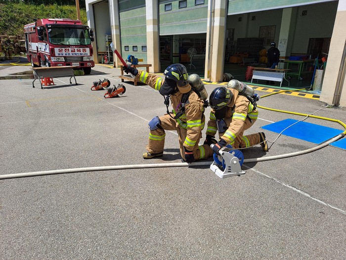 | ▲제51회 화재대응 2급 실시 평가 사진.(부산광역시소방학교 제공) |